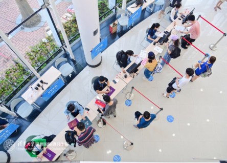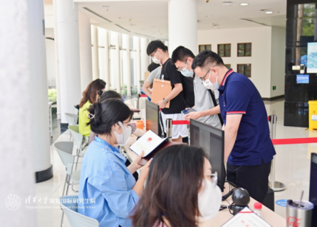 在CⅡ楼一层的迎新大厅和CI一层的教室,深圳国际研究生院党政办、培养处、学工办、信数中心、总务办、财务办、宣传与公关办等部门的老师和来自各专业的学生志愿者们早早地在各自的岗位上准备就绪,从校门口到宿舍,他们坚守在各个服务岗位,迎接即将到来的小“清新”们,为他们提供路线指引、问题解答、行李看管等贴心周到的服务。新生在工作人员的指引下有序完成资格审查、学费缴纳、住宿办理、户籍迁移等注册手续。在位于学院信息大楼的国际学生学者中心/港澳台学生学者中心,全球事务办的老师们也在热心地为国际及港澳台新生办理入学手续。