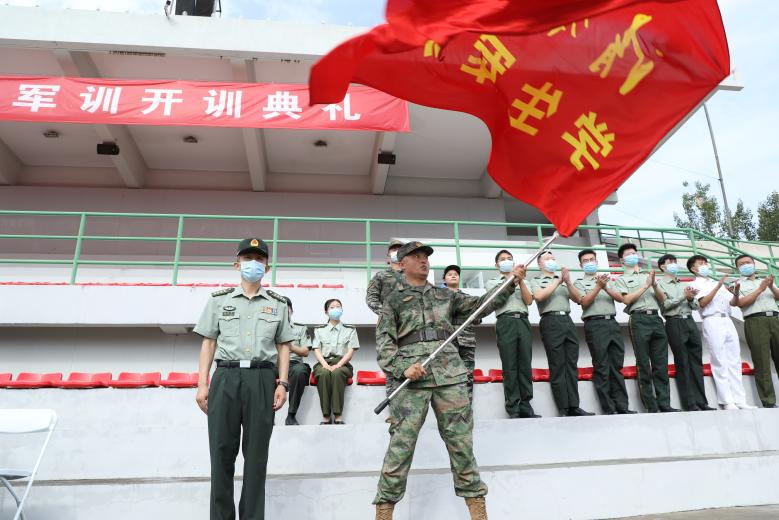 军训副总指挥、学生部部长、武装部部长、国防教育与人才培养办公室主任张婷主持大会并宣读了军训指挥部成员名单。今年,清华大学学生军训旅下设4个营,32个连。开训典礼上,蒋志刚为军训旅授旗。