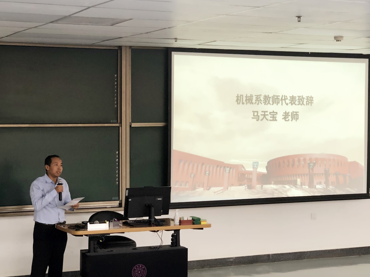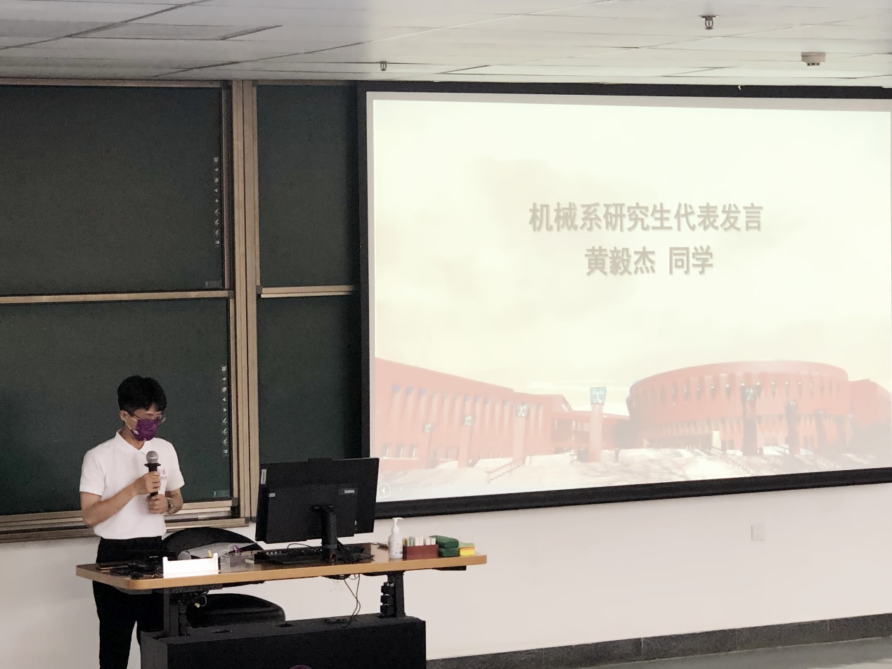接着,机械系研会主席黄毅杰与新生代表武小乂分别向同学们分享了自身的经历和感想。