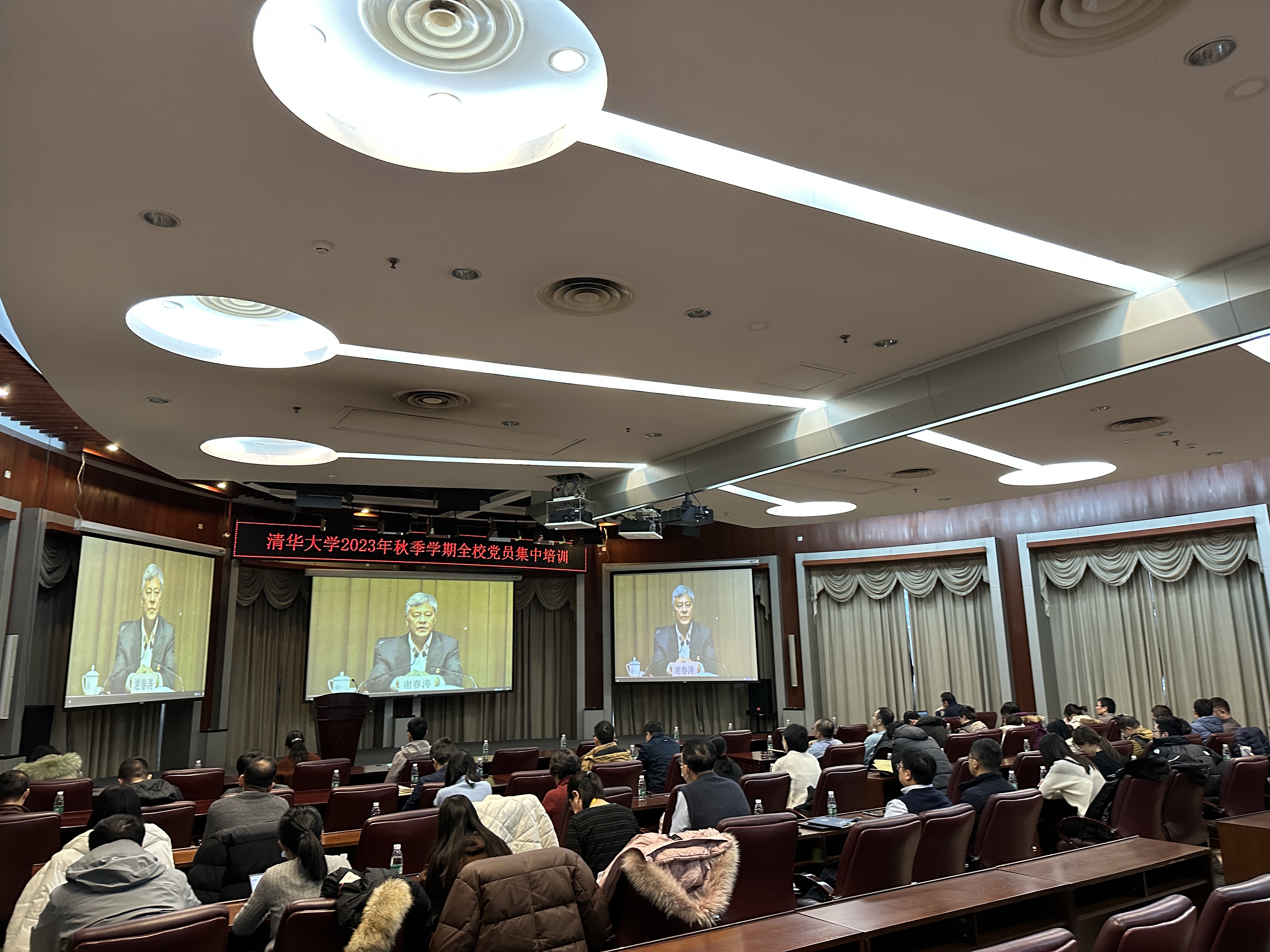 12月10日上午,电子工程系师生党员分别在新清华学堂主会场、电子工程馆分会场和教学楼分会场参加了清华大学2023年秋季学期清华大学全校党员集中培训。电子工程系党委书记沈渊、党委副书记刘一民在信检所党支部分会场,党委副书记李冬梅在线路所党支部分会场参加了本次党员集中培训。本次培训离退休教职工党员采取线上线下结合的方式开展,离退休党支部和光电所离退休党支部的党员分别参加了机关党支部和光电所党支部分会场的培训,行动不便的离退休党员采取线上的方式参加了培训。