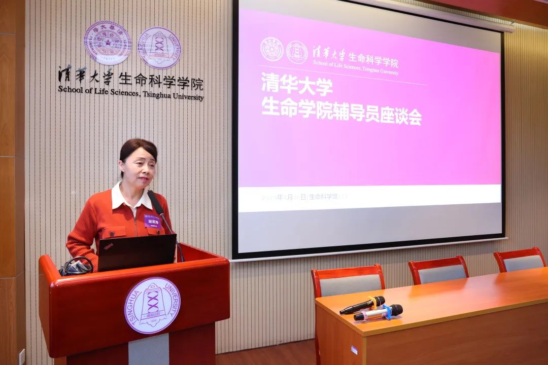 谢莉萍介绍了生命科学学院近十年来日新月异的发展变化。她表示,在清华大学“双肩挑”政治辅导员制度建立70周年之际,学院邀请辅导员和研工助理校友们返校交流,旨在总结梳理清华大学“双肩挑”政治辅导员制度对人才培养的影响,同时为辅导员校友之间以及与在岗辅导员之间提供交流讨论的机会,希望大家为学院未来发展出谋划策。