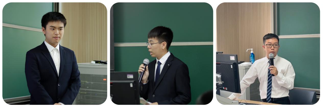 邱梓晟、陶元哲、高珂(左起)进行结业论文汇报