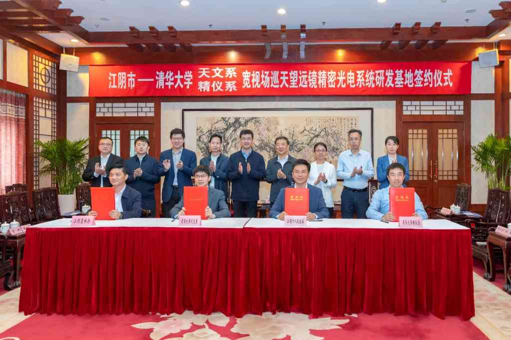 7日上午,过勇一行在江阴市实地调研了宽视场巡天望远镜项目选址建设情况,并出席宽视场巡天望远镜精密光电系统研发基地签约仪式,江阴市领导许峰、吴莉萍、陈涵杰、曹兴华、祁军参加仪式。过勇表示,江阴人杰地灵、区位优越,江阴市委市政府立足科技创新推动经济社会高质量发展的理念给大家留下了深刻印象。他指出,清华大学在2021年发布了《清华大学2030创新行动计划》,聚焦优化学科布局加强学科建设、强化基础研究和关键核心技术攻关、繁荣发展人文社会科学等方面进行布局,此次签约的宽视场巡天望远镜项目便是其中重要的组成部分。希望双方持续深化拓展校地合作的广度和深度,稳步推进大科学装置建设,为服务国家科技自立自强提供战略支撑力量。访问期间,过勇一行还调研了国家超算无锡中心、宜兴蒋南翔纪念馆、江阴长江大保护展示馆和部分校友企业,深入了解当地科技创新、文化建设、生态保护、产业布局等情况。清华大学无锡应用技术研究院、国内合作办、美术学院、天文系、精仪系、校团委等相关部门和院系负责人参加相关活动。