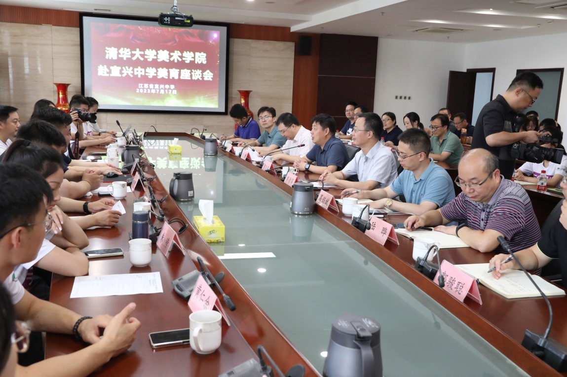 在宜兴市蒋南翔实验小学,“育见未来”支队为当地孩子们准备了剪纸、风筝绘制、扎染、拓印等活动课程,辅导员支队的成员们为当地学生们带来了丰富多彩的励志课堂,并在工艺美术大师的引导下共同观摩了非遗紫砂工艺。清华美院雕塑系研究生还用紫砂泥为江苏省宜兴中学学生现场示范创作了徐悲鸿雕塑。宜兴市民间制壶艺人高洋接受采访时表示:“清华美院是最好的美术学院之一,他们的审美、他们的技法融入到我们的传统工艺中,可以给当代紫砂带来新的养分、新的发展。”