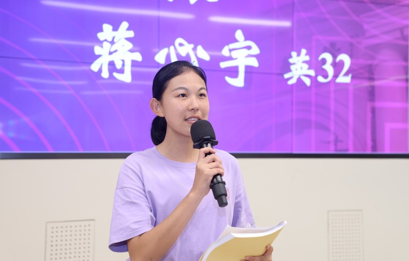 在校生代表吴丹妮表示,在外文系个人的学习成长与世界的命运是息息相关的。她建议新生将视野放到自身之外的广阔世界中去,只有了解世界遭遇的危机和机遇,个人的学识才会有更为精准的施展空间。