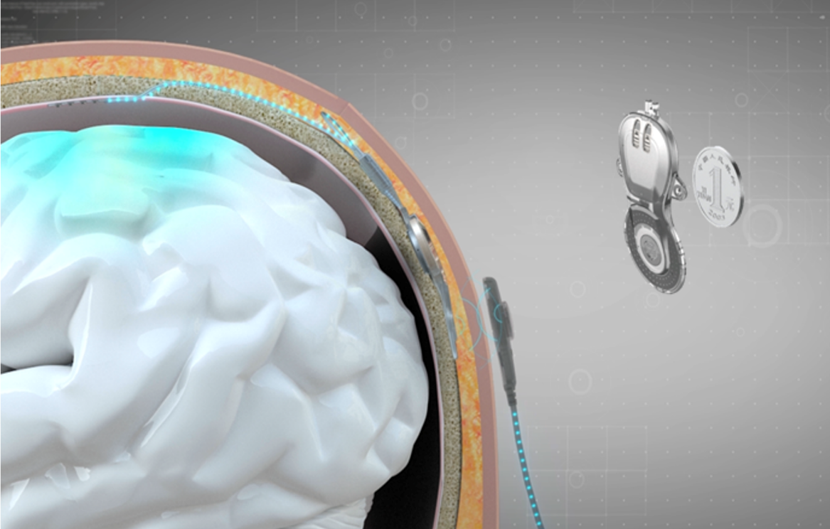 无线微创植入脑机接口NEO系统及其体内机 图片设计合成/医学院 洪波