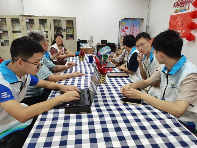 同学们在青云北社区开展座谈调研