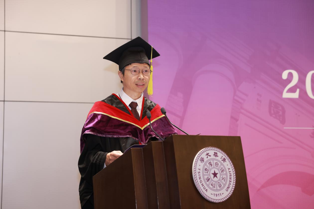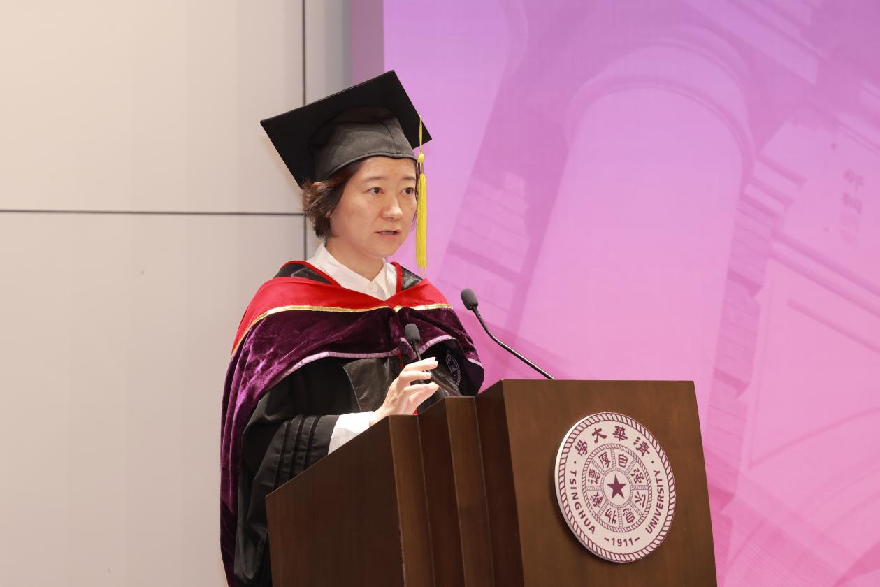地学系教授徐冰作为导师代表致辞。她希望毕业生们能在未来科技变革的浪潮中施展自己的才华,成为真正的弄潮儿,成为国家的有志有识有用之才。她表示,当代社会面临巨大的挑战,这些都和地球系统科学息息相关,也是地学关注的焦点。在这样的背景下,要坚守追求真理、实事求是、独立的科学精神,并保持内心对科学对自然的热爱。“这份热爱是创新思维的源泉,是坚守真理、实事求是,保持独立精神的动力,也赋予了保持专注的定力,战胜挫折、从失败中重新崛起的勇气。”