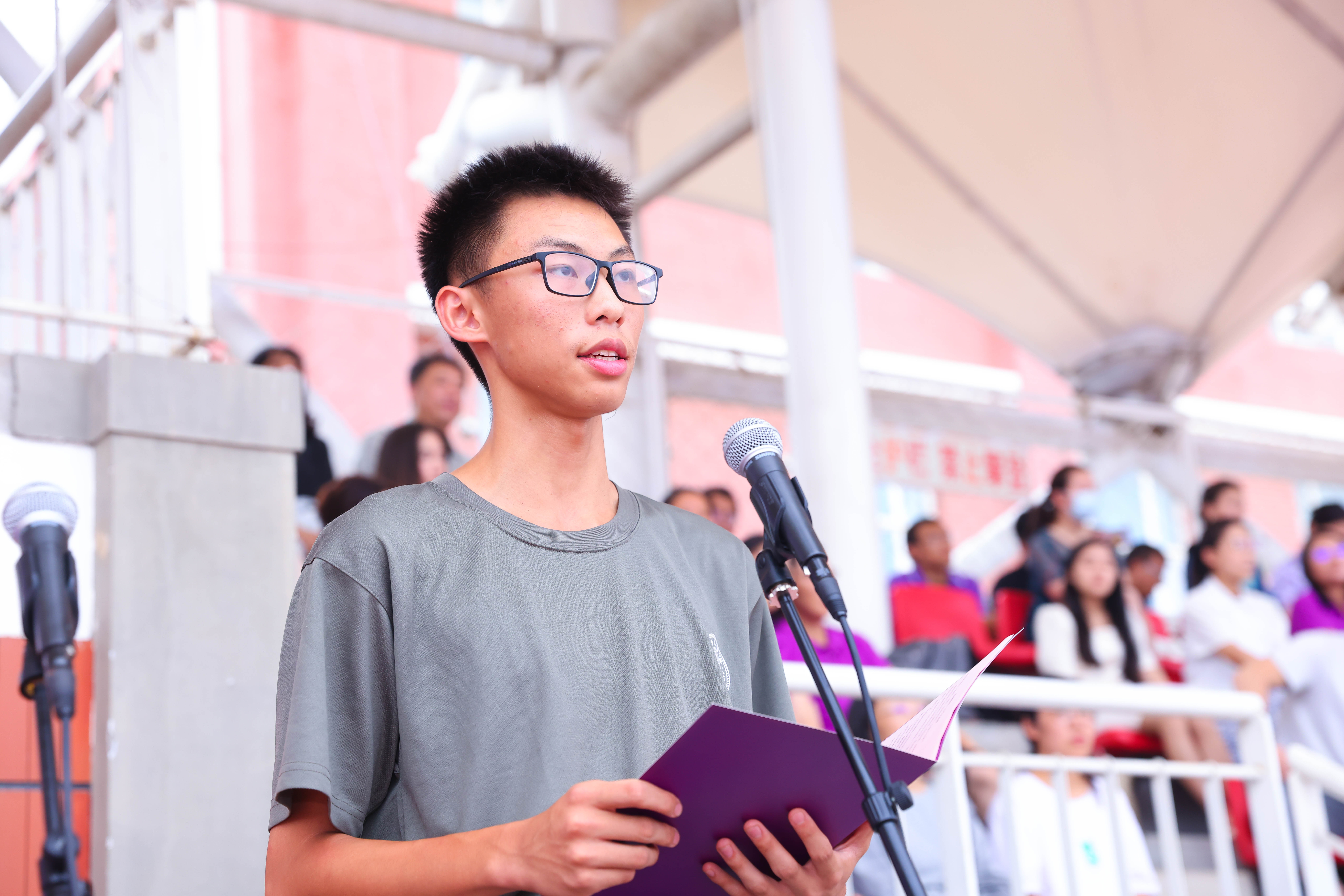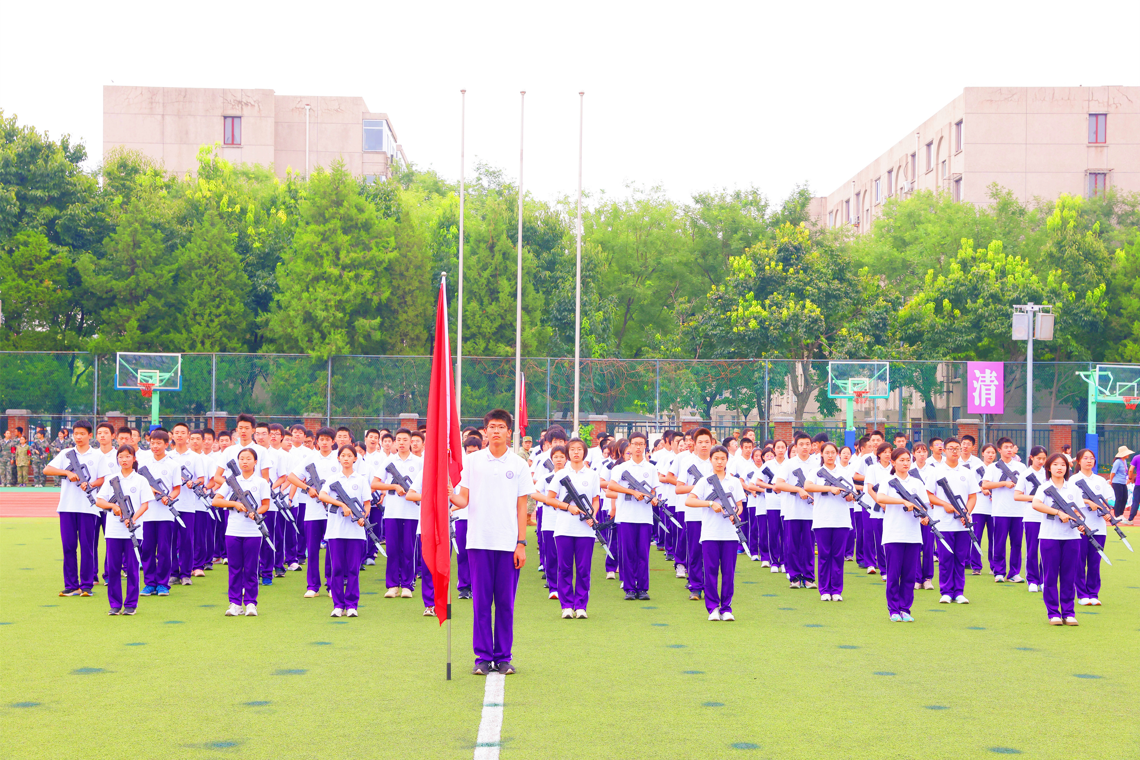 在庄严的国歌声中,鲜艳的五星红旗缓缓升起,清华附中新学期的开学典礼正式拉开帷幕。
