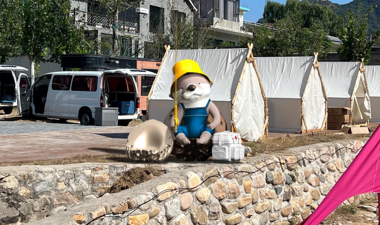 清华大学文科资深教授李象群创作的地标雕塑《桃仙荟》格外引人关注,这件作品既延续了《大圣2024》中京剧武生的经典造型,又融入了平谷大桃这一地方特产元素,成为彰显南山村文化特色的鲜明标志;美院教师陈辉、原博创作的雕塑《南山精灵》以“自然共生”为核心灵感,将森林精灵的可爱形象融入雕塑语言,作品将“青山绿水”的生态愿景具象化,通过精灵与绿色环境的互动,传递出自然孕育生机、人类守护生态的环保理念;由美院雕塑系校友孔繁迪创作的《南山獭》表现的是一只可爱的水獭正坐在由核桃做成的沙发上钓鱼,表现“悠闲与守护”的文化内涵,使艺术与乡村在空间中自然交融……