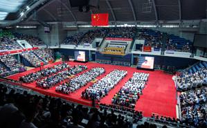 2013.088月28日上午,清华大学2013级研究生新生开学典礼在综合体育馆举行,来自全球102个国家和地区的5000余名研究生新生和各院系教师代表参加了开学典礼。校长陈吉宁发表了题为《提升境界》的讲话。