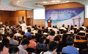 2013.065月30日,清华大学教书育人研讨会30周年师德论坛在主楼举行。中国教科文卫体工会主席万明东,北京市教育工会主席史利国,清华大学党委书记胡和平,党委副书记、工会主席韩景阳,副校长袁驷出席论坛。韩景阳主持论坛。