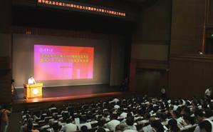 2013.077月11日下午,清华大学2013年赴西部、基层、国家重点单位工作毕业生出征仪式暨“启航计划”暑期就业实践启动仪式在伟伦楼报告厅举行。校党委书记胡和平、副校长邱勇出席仪式。校党委副书记史宗恺主持仪式。