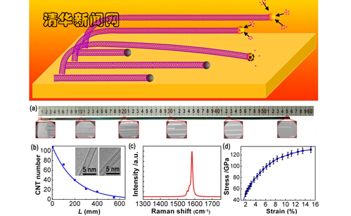 近日,清华魏飞团队成功制备出世界上最长的、单根长度达半米以上的碳纳米管,这也是目前所有一维纳米材料长度的最高值。