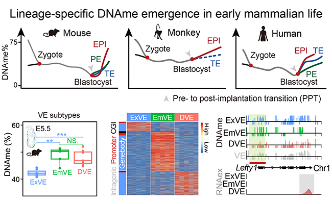 6月3日,清华大学生命学院、清华-北大生命联合中心周帆副教授课题组在《细胞报告》(Cell Reports)在线发表了题为“解析早期哺乳动物发育中DNA甲基化-转录的着床前后转变”的研究论文。该研究结合高精度多组学挖掘与体内外模型验证等体系,从围着床胚胎主...