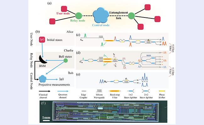 近日,清华大学电子系张巍教授课题组通过设计和实现时间片编码的量子隐形传态光量子芯片,将芯片间量子隐形传态的光纤传输距离提升了3个数量级,达到12.3公里,展示了光量子芯片技术在未来量子网络中应用的巨大潜力。