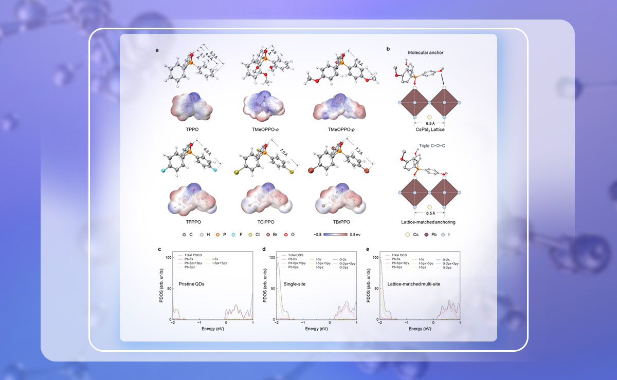 近日,清华大学化学系马冬昕、段炼团队提出了一种晶格匹配的多位点分子锚设计策略,实现了高效稳定的钙钛矿量子点发光器件。团队依据CsPbI3的晶格特性,设计了一系列分子锚来提升量子点的光电性能。