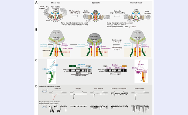 近日,清华大学药学院肖百龙教授课题组报道了PIEZO通道如何凭借一种“弹簧样”结构元件与力学机制,精准调控其快速激活与失活,并决定其随机性的单通道开放与关闭的电生理特性。该工作不仅深化了对PIEZO通道工作机制的理解,而且提出了离子通道在单分子水...