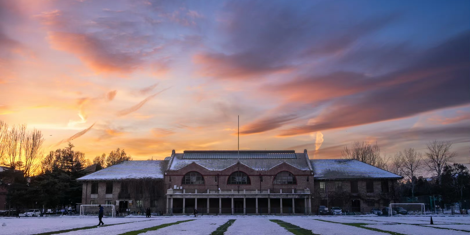 寒冬午后,柔和的阳光斜射在脸上,白云轻柔淡薄如羽翼,映衬着古朴的清华园。