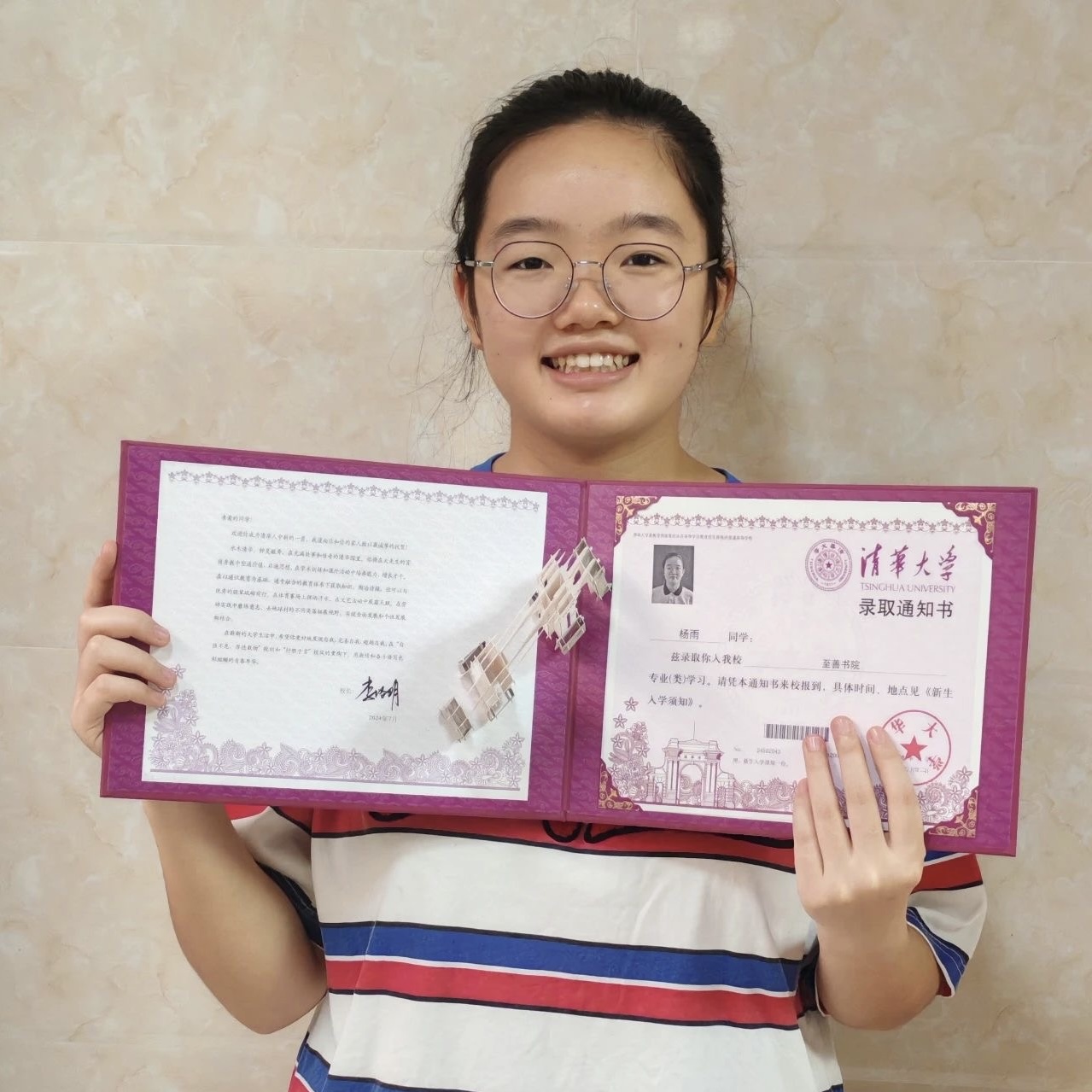 女儿,你的清华录取通知书到了,请签收!