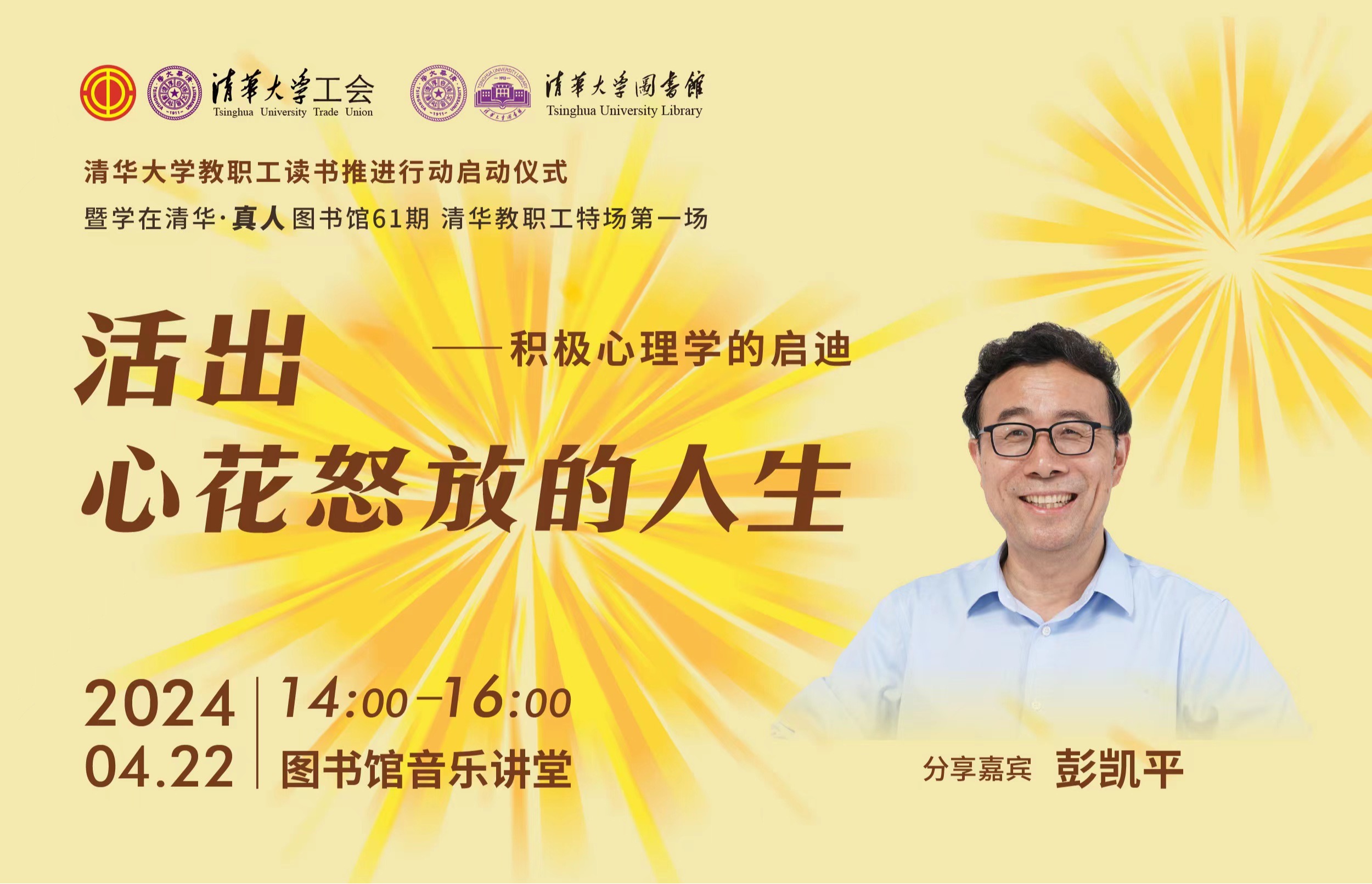 清华大学教职工读书推进行动启动仪式暨“学在清华·真人图书馆”61期活动特别邀请彭凯平老师以“活出心花怒放的人生——积极心理学的启迪”为主题,从积极心理学的角度,帮助我们掌握情绪调节的多种方法,创造幸福美好的生活体验。