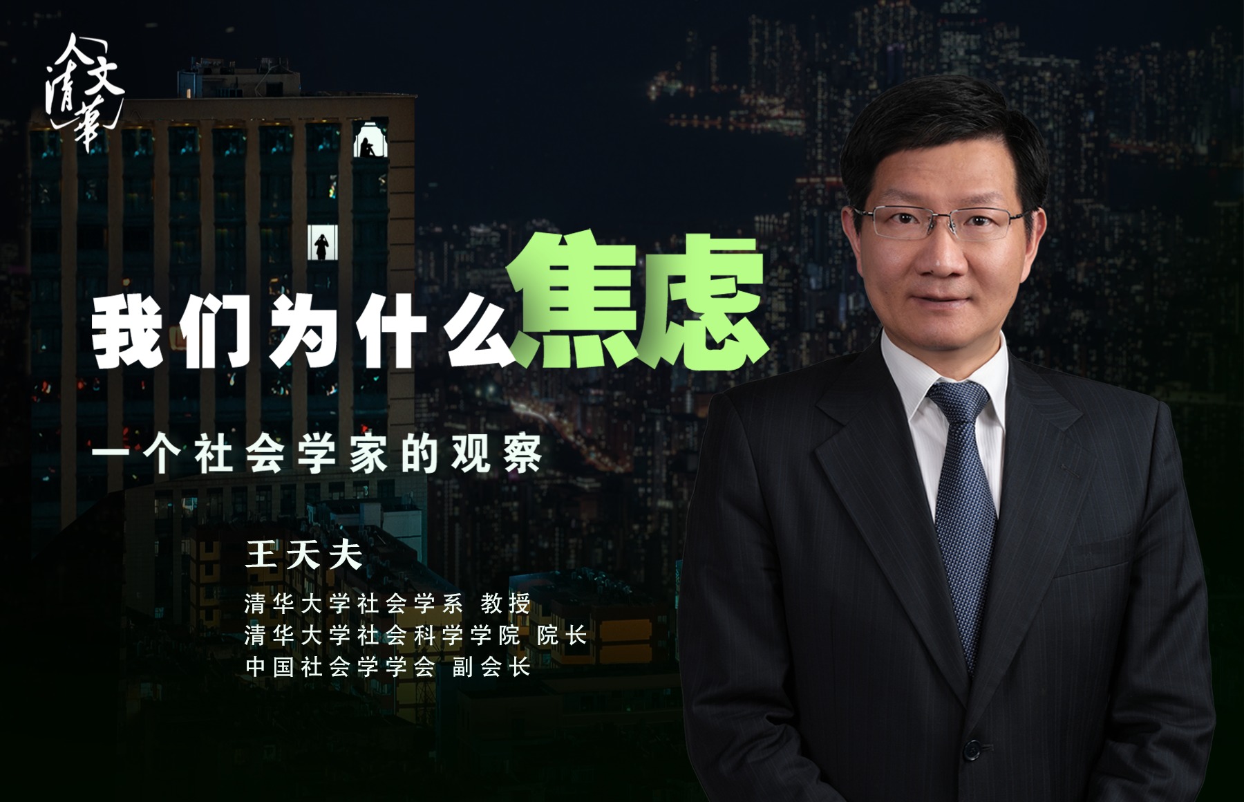 5月15日晚19点,人文清华讲坛,清华大学社会科学学院院长王天夫教授将从社会学角度解析焦虑的根源,解答“我们为什么焦虑”的时代之问,揭示社会变迁对人的影响,帮助我们理解自我、理解社会,重获平衡与安宁。