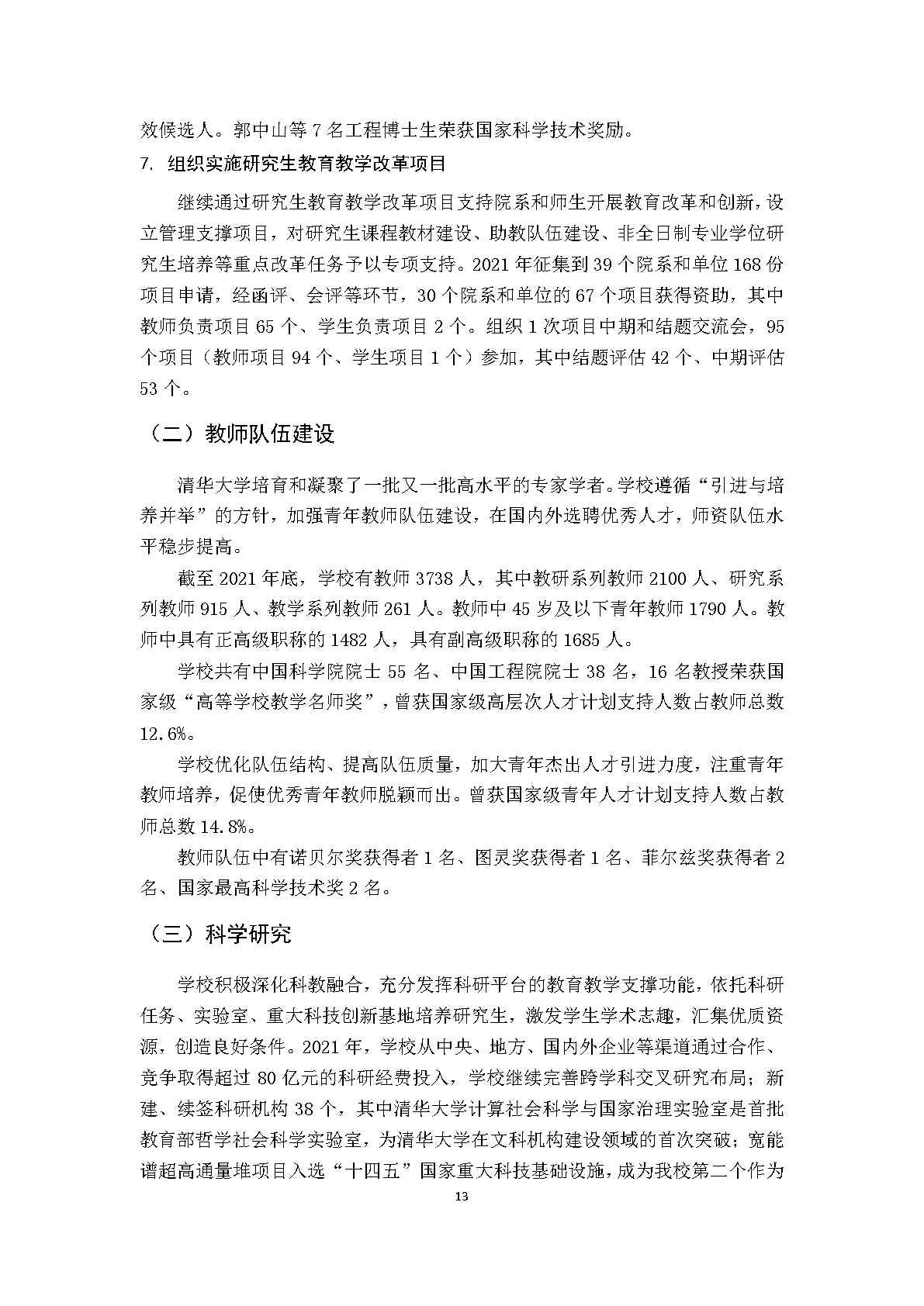 清华大学周期性合格评估参评学位授权点建设年度报告(2021年度)