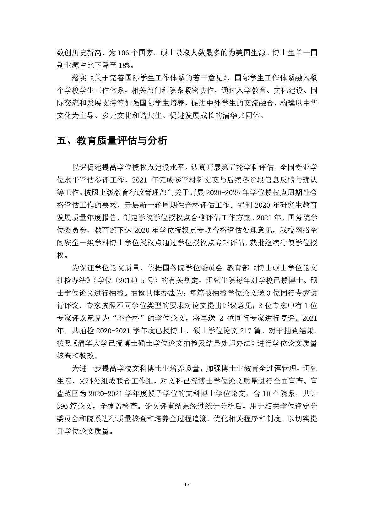 根据《国务院学位委员会 教育部关于修订印发<学位授权点合格评估办法>的通知》、《国务院学位委员会 教育部关于开展2020-2025年学位授权点周期性合格评估工作的通知》及《北京市学位委员会办公室关于开展2020-2025年学位授权点周期性合格评估工作的通知》,现发布《清华大学2021年度研究生教育发展质量年度报告》及参与本轮周期性合格评估的各《2021年学位授权点建设年度报告》。
