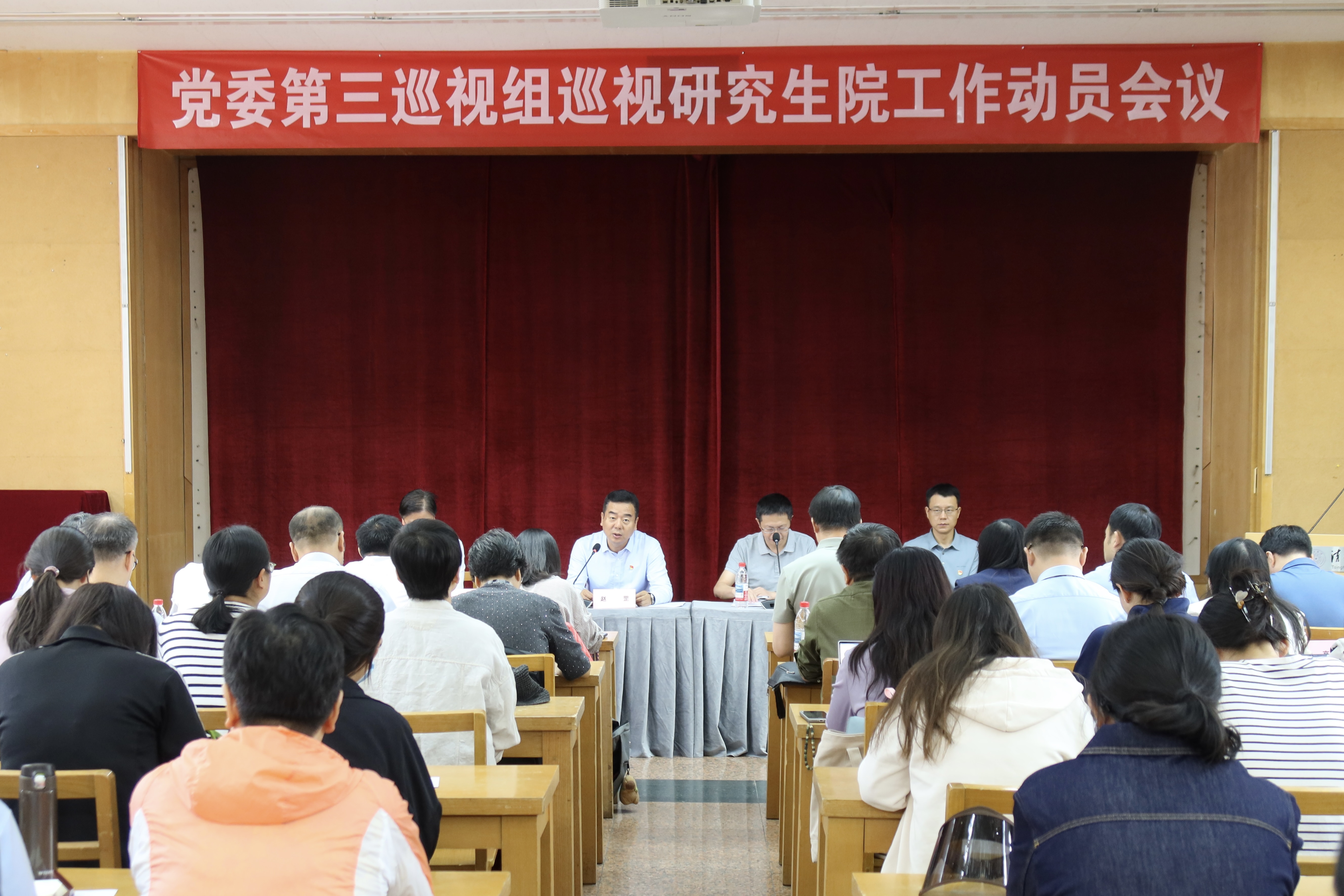 党委第三巡视组、巡视办有关同志,研究生院领导班子成员出席会议;研究生院原班子成员代表、研究生院全体在职职工、院系代表列席会议。